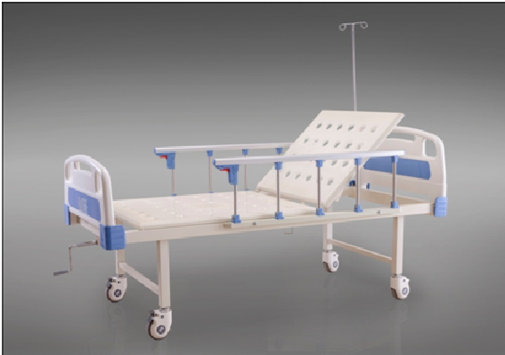 1- فرش صاج 1ملى مزود بفتحات مكبوسة للداخل مقسم إلي جزئين. 2- أجناب ألومنيوم . 3- عجل 5بوصة بوصة بفرامل علي كل عجلة. 4- فتيل يدوى مزود بيد حديد مطلية نيكل كروم قابلة للطى . 5- لوح الرأس والقدم مصنوع من بلاستك ABS. 6- أربعة أماكن لحامل المحلول وحامل القسطرة. 7- شاسيه من علب الحديد 6× 4 سم. 8- دهان إليكتروستاتيك. 9- حامل محلول ستانليس. الأبعاد : الطول : 205 سم . / العرض : 90 سم. / الإرتفاع : 60 سم. الجزء الخاص بظهر المريض يتحرك بواسطة فتيل يدوى بزاوية من صفر إلى 70 درجة. Screen reader support enabled.