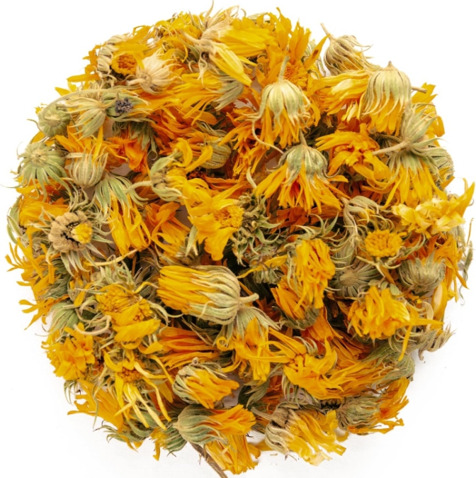 أزهار كالانديولا مصرية مجففة بلون زاهي وغنية بالزيوت الطبيعية، مثالية للمستحضرات العشبية والتجميلية.