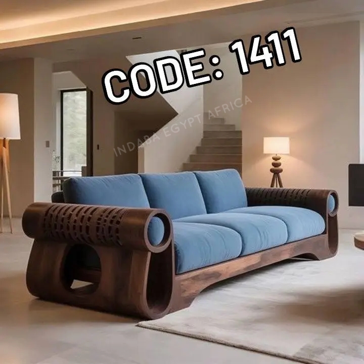 المواصفات والخامات الأساسية الهيكل الخارجي (الإطار): إطار خارجي كامل مصمم من الخشب الطبيعي الصلب عالي الجودة (مثل الزان أو الجوز الأمريكي) بطلاء داكن، مما يضمن ثباتاً استثنائياً وقوة تحمل. التصميم: يتميز الإطار الخشبي بانحناءات أنيقة في القاعدة والأذرع، مع تفاصيل نحت وتفريغ دقيقة (Grille/Woven Pattern) على جانبي الأذرع، تبرز جمال الحرفية. الوسائد: تتكون الأريكة من ثلاث (3) وسائد ظهر وثلاث (3) وسائد جلوس منفصلة. الحشوة: إسفنج عالي الكثافة (Density 35-40) لجلسة مريحة وداعمة، مغلف بطبقة من الفايبر أو الريش الصناعي. القماش: قماش مخمل ناعم (Velvet) أو كتان سميك فاخر بلون أزرق سماوي/كحلي فاتح (Dusty Blue)، القماش قابل للإزالة (قد يكون بسوستة) لسهولة التنظيف.