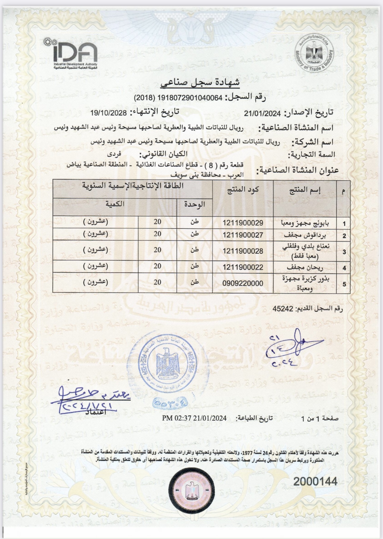 العنوان: الحى الحكومى-وزارة التجارة والصناعة-العاصمة الإدارية
